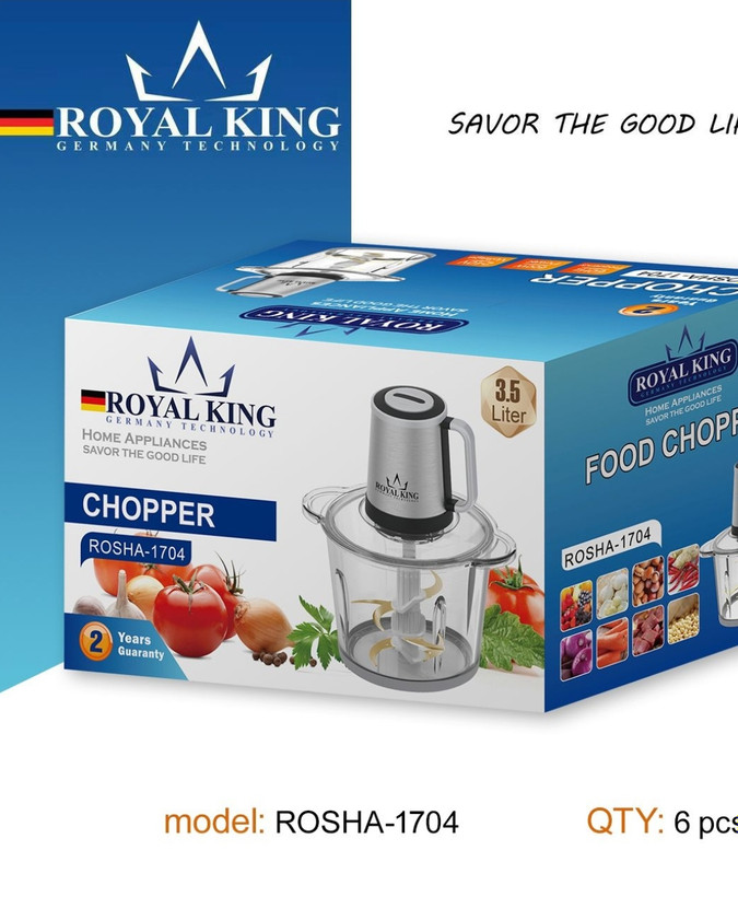 با خردکن رویال کینگ مدل 1704 تجربهای متفاوت از خرد کردن مواد غذایی را داشته باشید. این دستگاه با طراحی مدرن و عملکرد فوقالعاده، به شما امکان میدهد سبزیجات، میوهها، گوشت و سایر مواد غذایی را در کمترین زمان و با کیفیتی بینظیر خرد کنید.