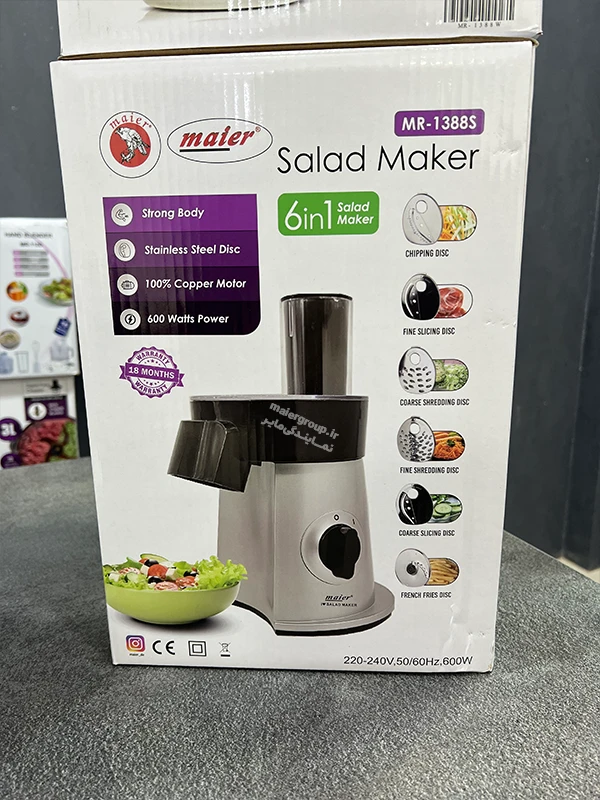 خرید و قیمت سالاد ساز مایر 1388 برای بسیاری از خانوادهها به یک دغدغه مهم تبدیل شده است، چرا که این دستگاه یکی از کاربردیترین لوازم آشپزخانه محسوب میشود. سالاد ساز مایر مدل 1388 با توان 600 وات واقعی، بدنهای مقاوم و موتوری 100 درصد مسی طراحی شده تا پاسخگوی تمام نیازهای شما در خرد کردن و برش انواع مواد غذایی باشد. این دستگاه با شش تیغه متنوع از جمله دیسک مخصوص خلال سیبزمینی، قابلیت آمادهسازی سریع کاهو، کلم، خیار، هویج و حتی گوشت را دارد. طراحی مدرن و ارائه در دو رنگ جذاب سفید (1388w) و سیلور (1388s) باعث شده است تا علاوه بر کارایی، زیبایی خاصی به آشپزخانه شما ببخشد. اگر به دنبال دستگاهی هستید که هم سرعت کارتان را افزایش دهد و هم نتیجهای حرفهای ارائه دهد، سالاد ساز مایر 1388 انتخابی بینظیر خواهد بود.